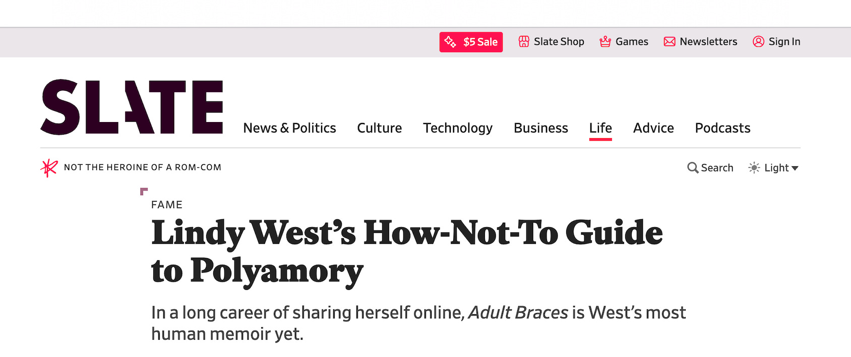 Author Lindy West’s new memoir, Adult Braces, has generated a great deal of discourse. There were pieces in The Atlantic (two, in fact), the Wall Street Journal, The New York Times, New York Magazine, and … really, the Wall Street Journal?