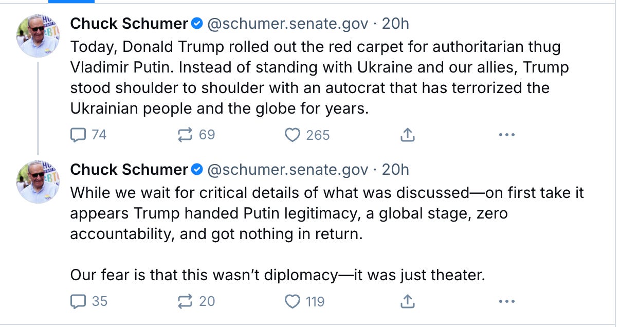 Now compare to Senate Minority Chuck Schumer’s strongly worded post.