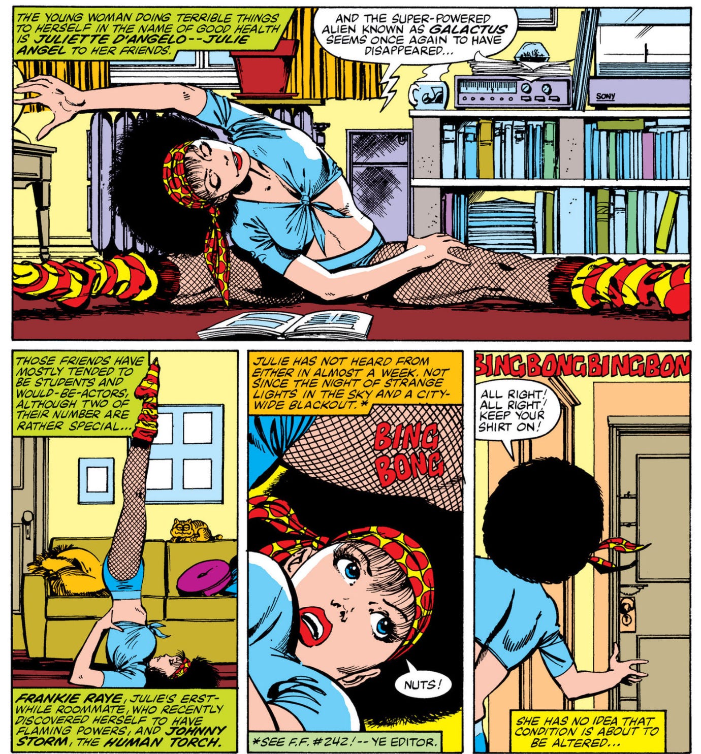 Fantastic Four: First Steps takes place in an alternate reality “retro-futuristic” 1960s (Earth 828). When I started reading the Fantastic Four comic, the heroes lived in a very 1980s New York City, as drawn by John Byrne. You could almost smell the trash on the streets. And the hairstyles and fashions, especially for the women, were from an early MTV video.