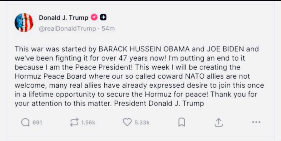 I don’t see how this war ends without an invasion. Iran cannot trust any deal while the dotard remains in power and any leader who accepts the humiliation that Trump will demand (as a cruel, demented child he cannot conceive of winning without humiliating an opponent, imagine if this bag of shit was in Truman’s position after WW2) would be killed by his own people. And we can’t use the straits until Iran allows it. So I hope we send in the Proud Boys first, with the inadequate military training that greaseball Hegseth’s will allow them.